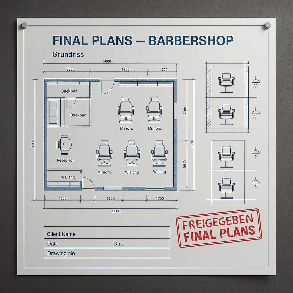 Wir erstellen komplette Innenarchitekturkonzepte für Barbershops und Salons, wobei jedes Detail geplant wird, damit Ihr Raum genau nach Ihren Vorstellungen realisiert werden kann.