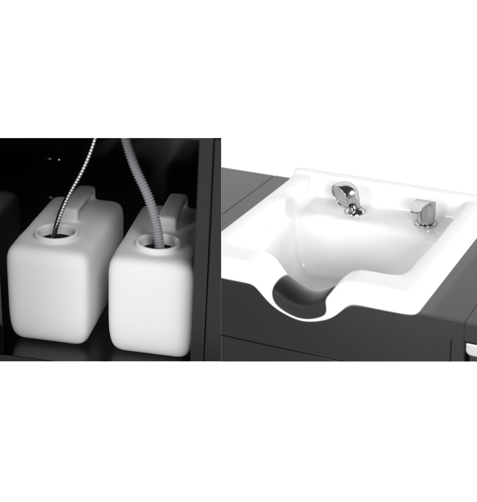 Lavabodan aynaya: iş akışınızı geliştiren özellikler. Barber Pro Evolution Station, her berberin işini daha kolay ve verimli hale getiren özelliklerle donatılmıştır. Lavabo modülü, siyah veya beyaz seçeneği olan şık bir seramik lavabo, motorize su tankı, entegre musluk ve doğrudan su bağlantısı gerektirmeden temiz ve hijyenik yıkama sağlayan bir atık su tankı içerir.