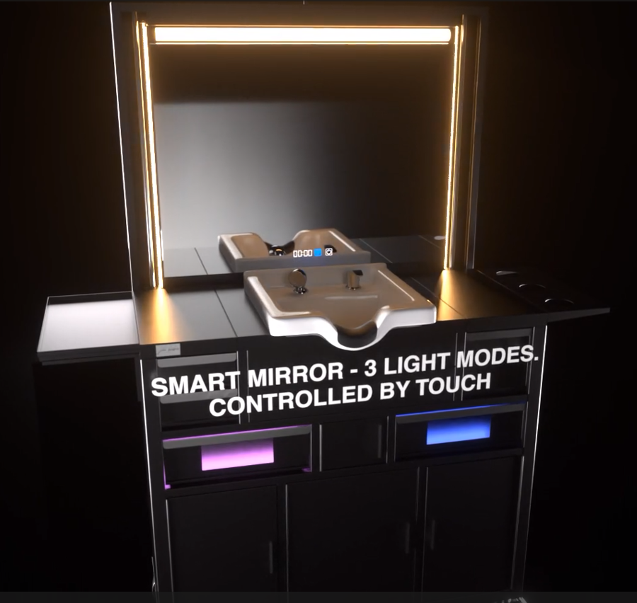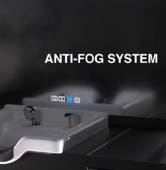 Ayna modülü tamamen motorize ve ayarlanabilir olup tek bir düğmeyle kolayca yukarı kaldırılabilir veya aşağı indirilebilir. LED aydınlatma sistemi üç ayarlanabilir mod sunar – nötr beyaz, soğuk beyaz ve sıcak beyaz – mükemmel görüş ve hassasiyet için; bu sırada buğu önleyici özellik her zaman net bir yansıma sağlar. Her ayrıntı, konfor, verimlilik ve profesyonel bir ortam yaratmak için tasarlanmıştır; böylece müşterilerinize en iyi hizmeti sunmaya odaklanabilirsiniz.