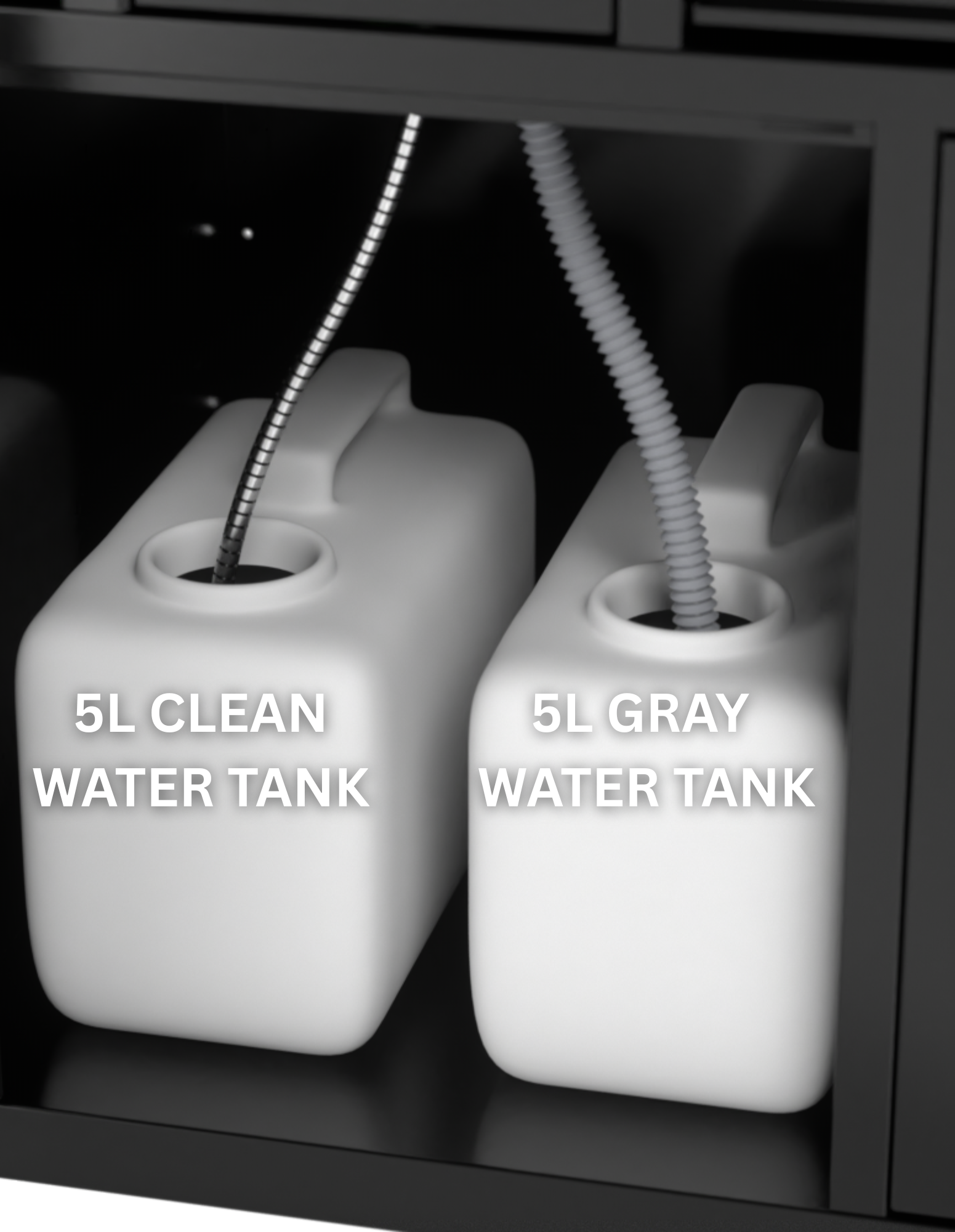 Ayna modülü, dokunmatik LED aydınlatmalı elektrikli bir sistemle donatılmıştır ve üç ışık modu (sıcak, nötr, soğuk), zamanlayıcı ve buğu önleme sistemi içerir. Lavabo modülü, 5 litrelik motorlu su ve atık tankına sahiptir, kurulum gerektirmez ve siyah veya beyaz renklerde mevcuttur (tekerleksiz).
